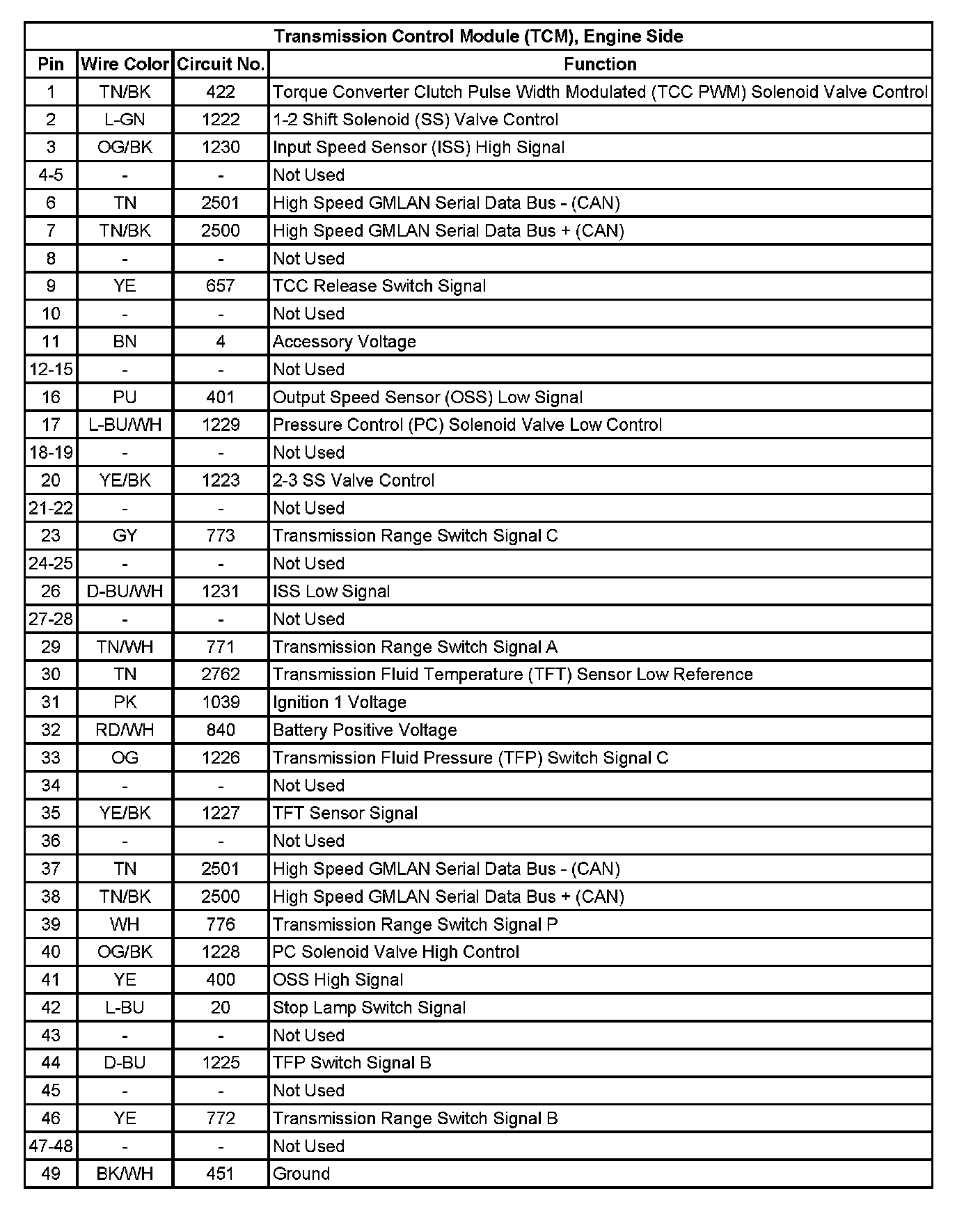 Transmission Control Module (TCM), Engine Side: