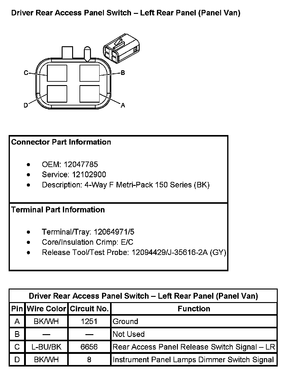 Driver Rear Access Panel Switch - Left Rear Panel (Panel Van):