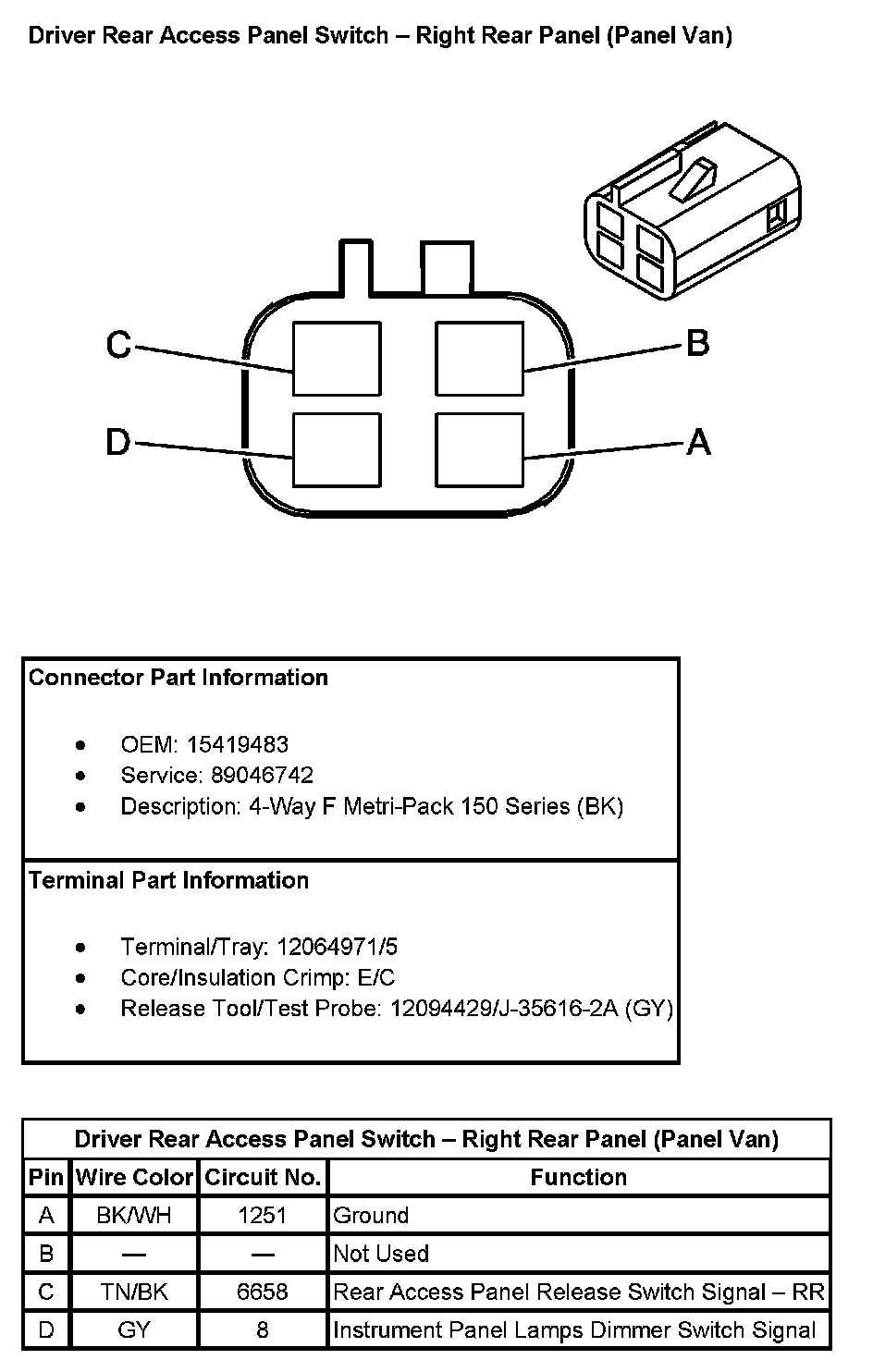 Driver Rear Access Panel Switch - Right Rear Panel (Panel Van):