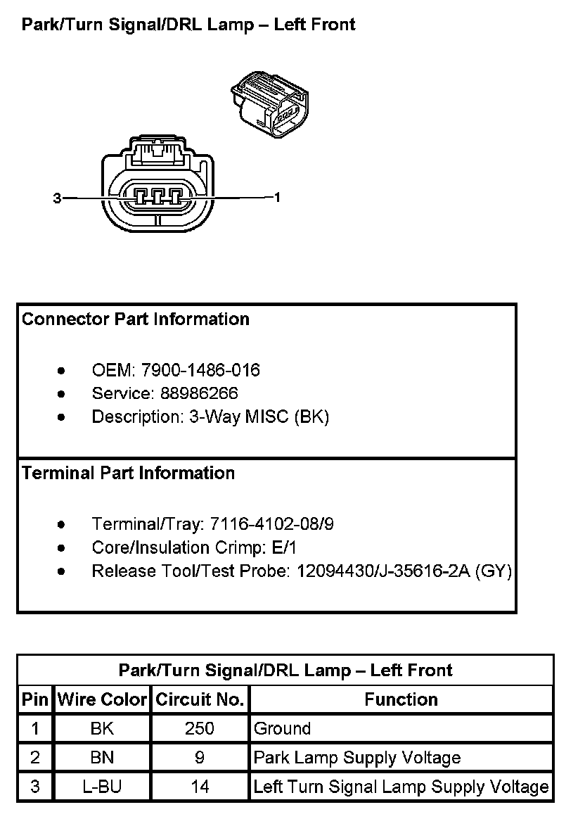 Park/Turn Signal/DRL Lamp - Left Front:
