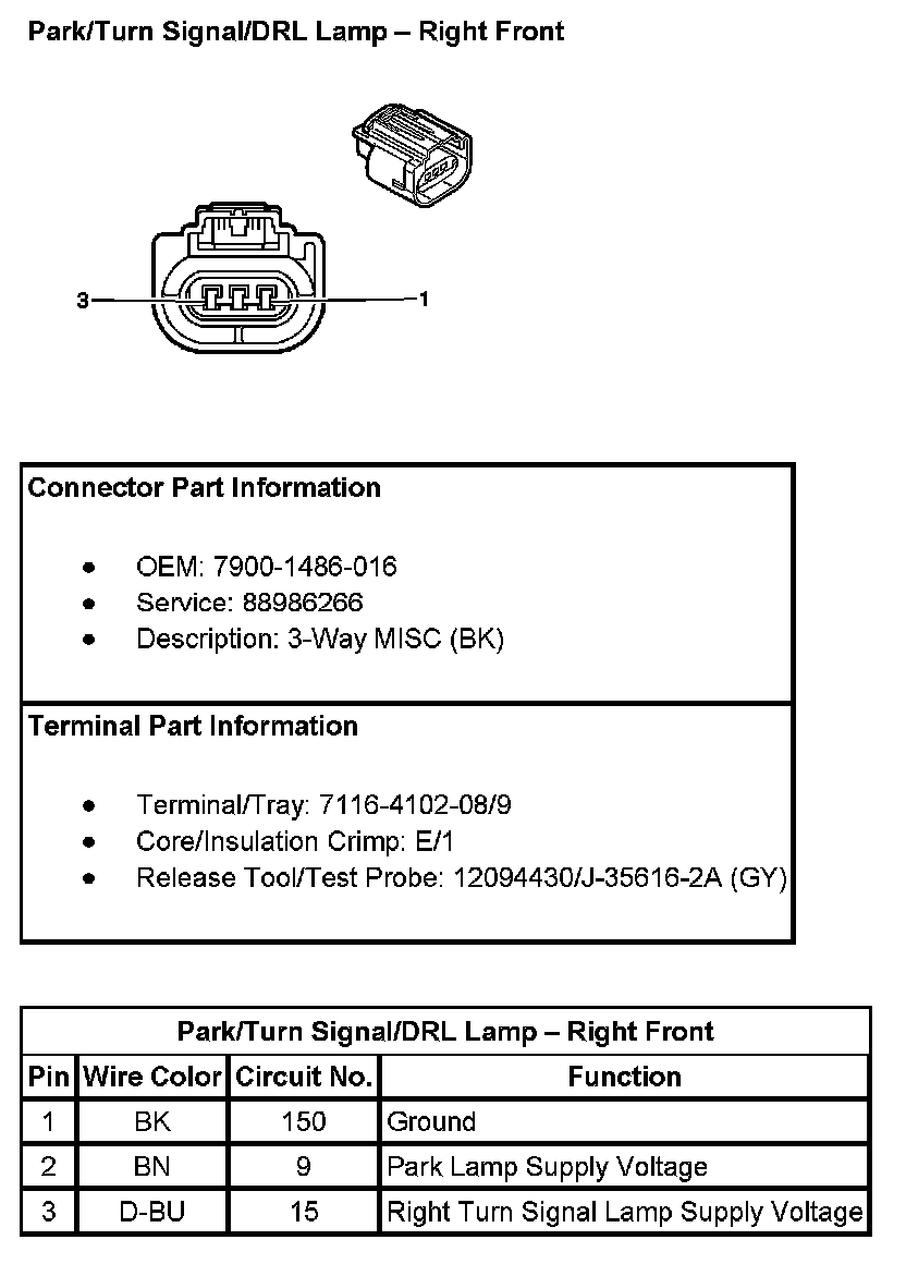 Park/Turn Signal/DRL Lamp - Right Front: