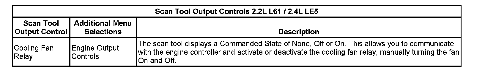 Scan Tool Output Controls 2.2L L61/2.4L LE5: