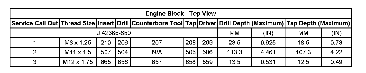 Home >> Chevrolet >> 2007 >> HHR L4-2.2L >> Repair and Diagnosis >> Engine, Cooling and Exhaust >> Engine >> Specifications >> Thread Repair Specifications