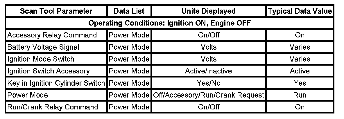 The scan tool data values were taken from a known good vehicle under the following conditions: