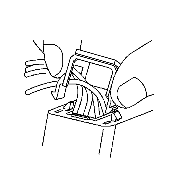 9. Use J 38125-12A tool to gently lift the terminal retaining tab while gently pulling the wire out of the back of the connector. Always remember never use force when pulling a terminal out of a connector. If the terminal is severely bent or damaged, push the wire out of the front of the connector instead of pulling it through. This will prevent damage to the internal seals of the connector. Once the terminal is pushed out of the connector, cut the wire as close to the terminal as possible and pull the wire through the connector.