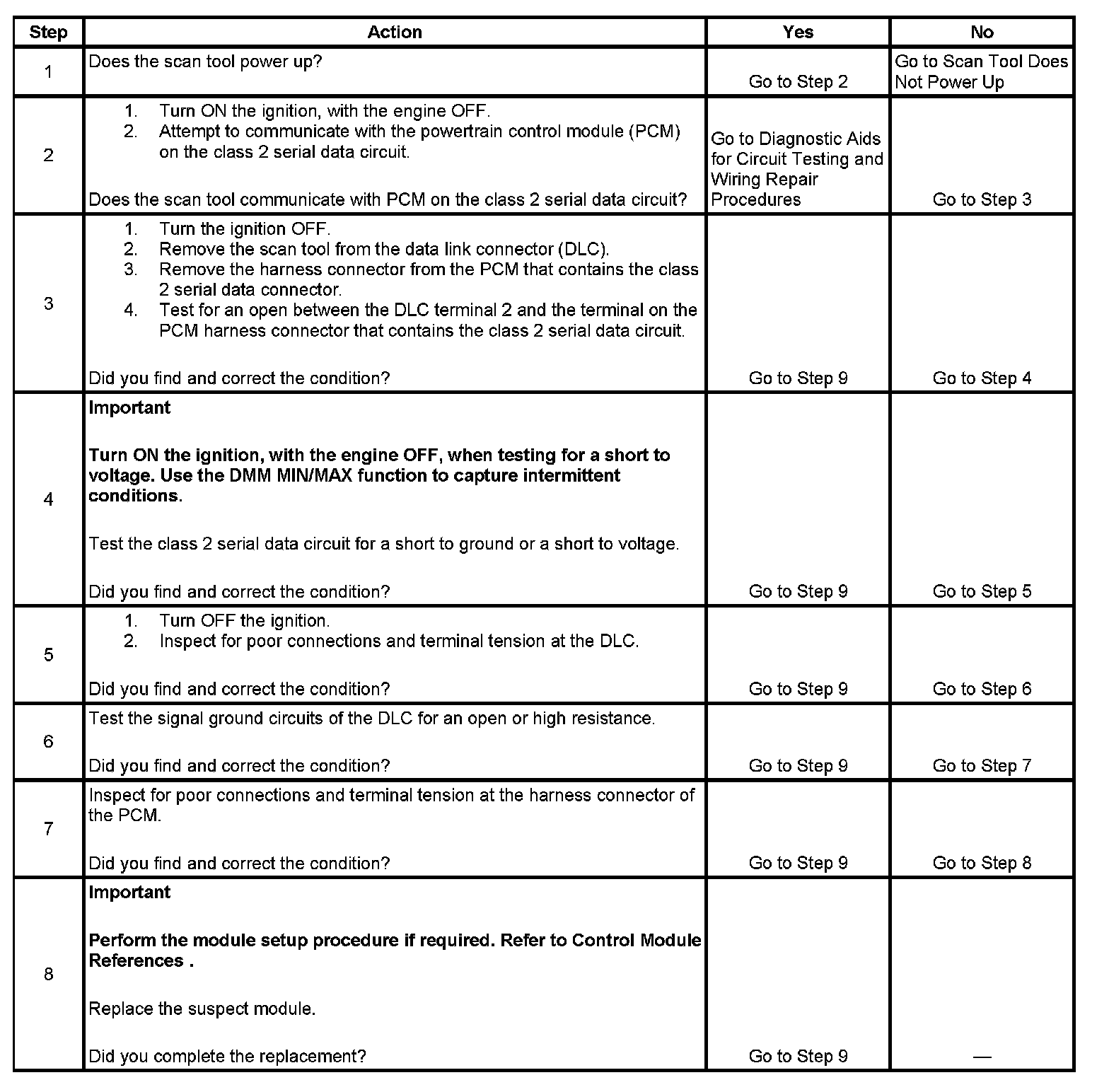 2. A partial loss or intermittent loss of communication in the class 2 serial data circuit uses a different procedure than a total loss of communication of the class 2 serial data circuit.