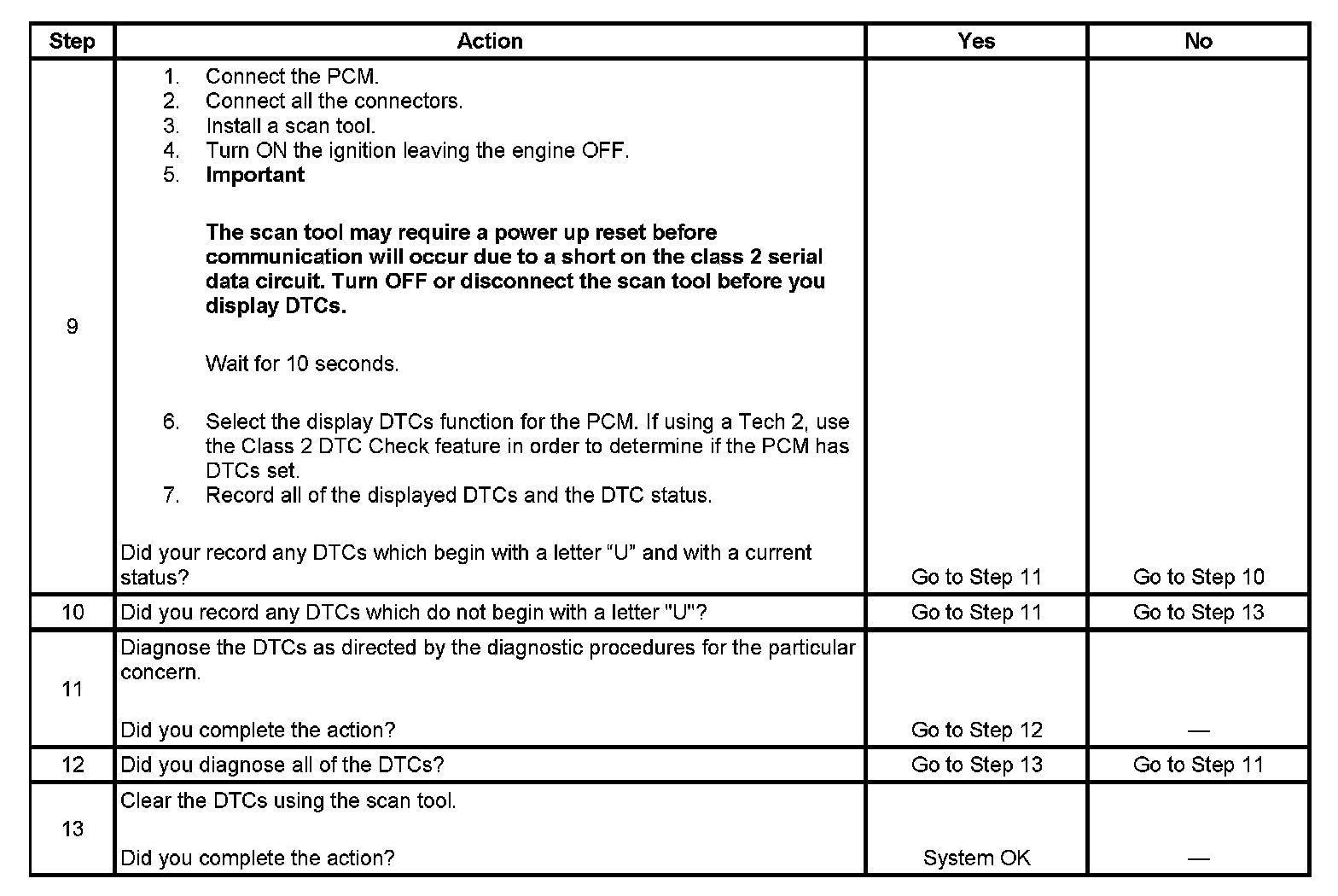 The powertrain control module (PCM) is connected to the class 2 serial data circuit. The class 2 serial data circuit is used for diagnostic purposes only in this vehicle. Connecting a scan tool to the data link connector (DLC) allows communication with the PCM for diagnostic purposes. DTCs may be set due to this symptom and during this diagnostic procedure. Complete the diagnostic procedure in order to ensure all the DTCs are diagnosed and cleared from memory.