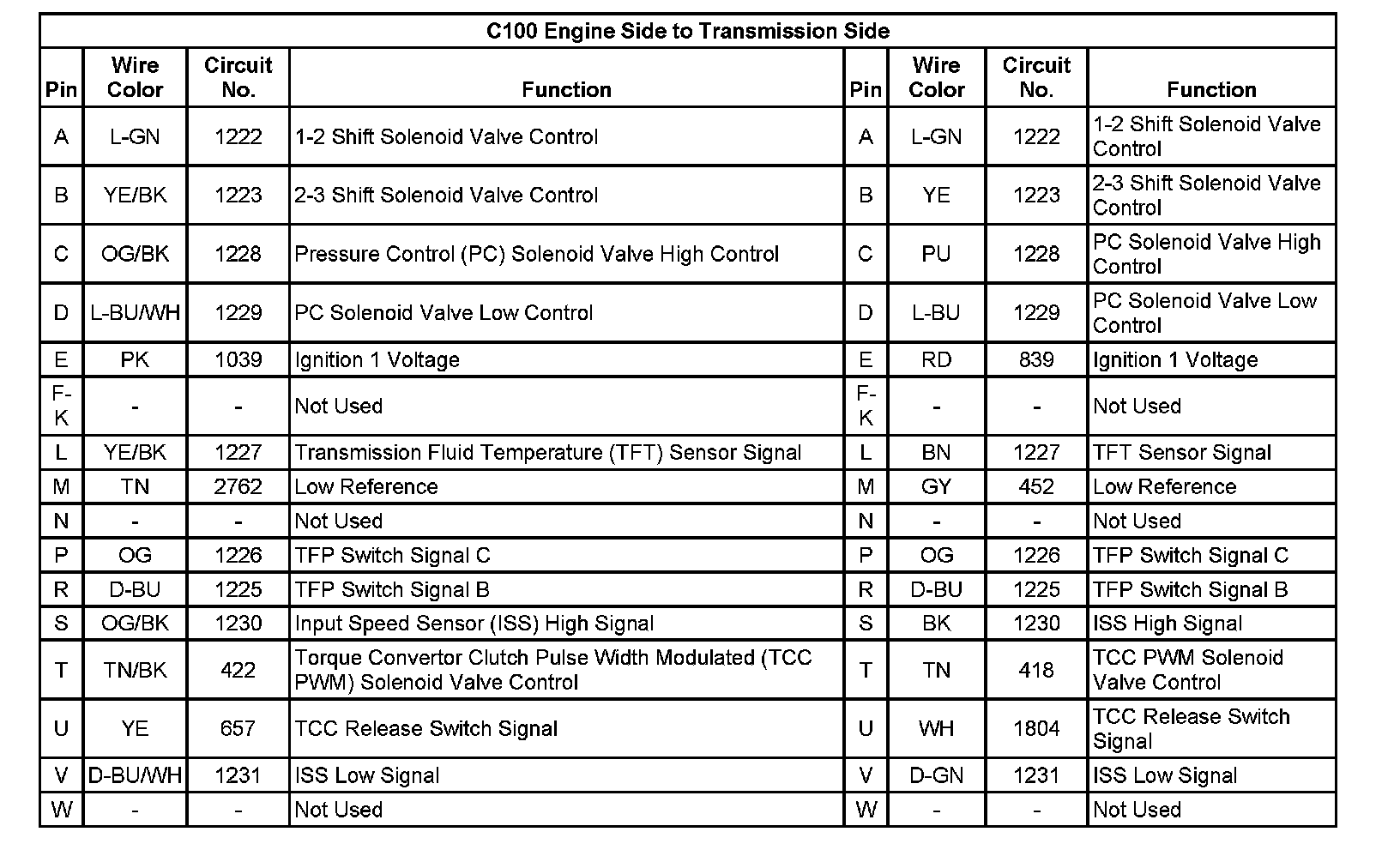 C100 Engine Side to Transmission Side: