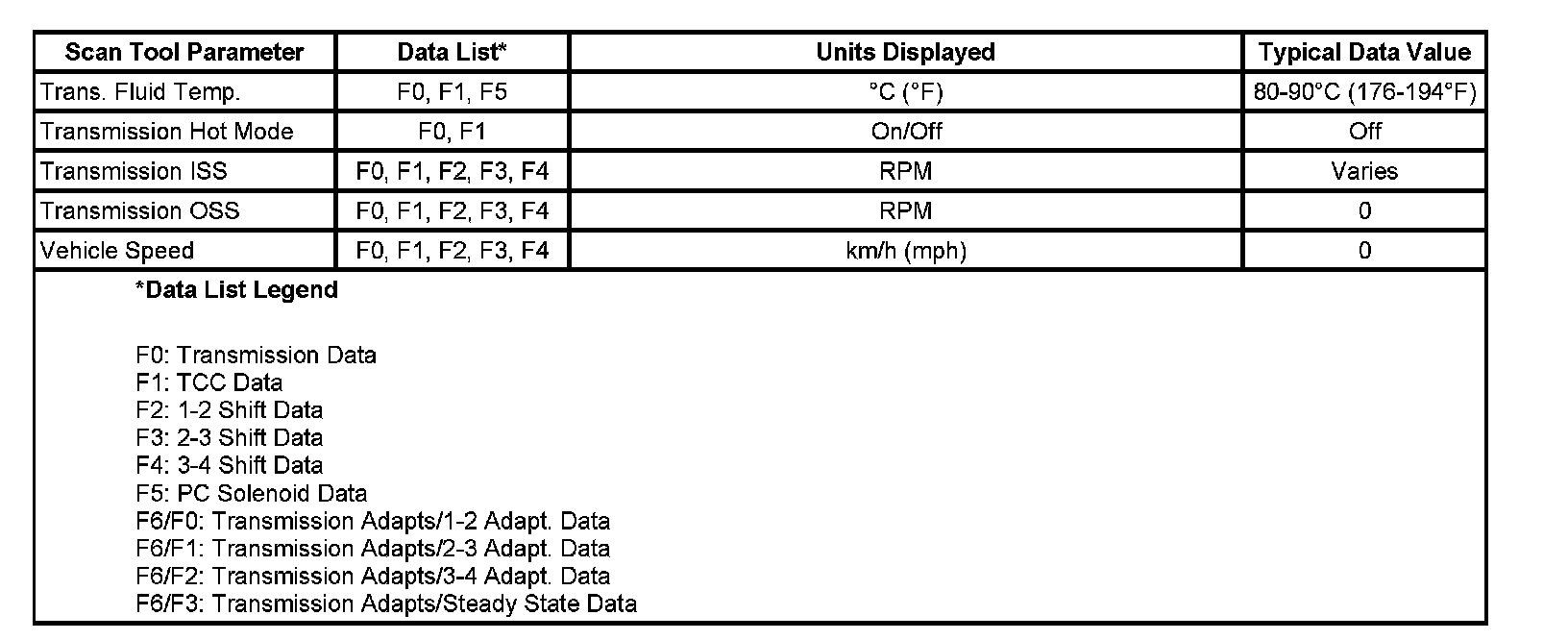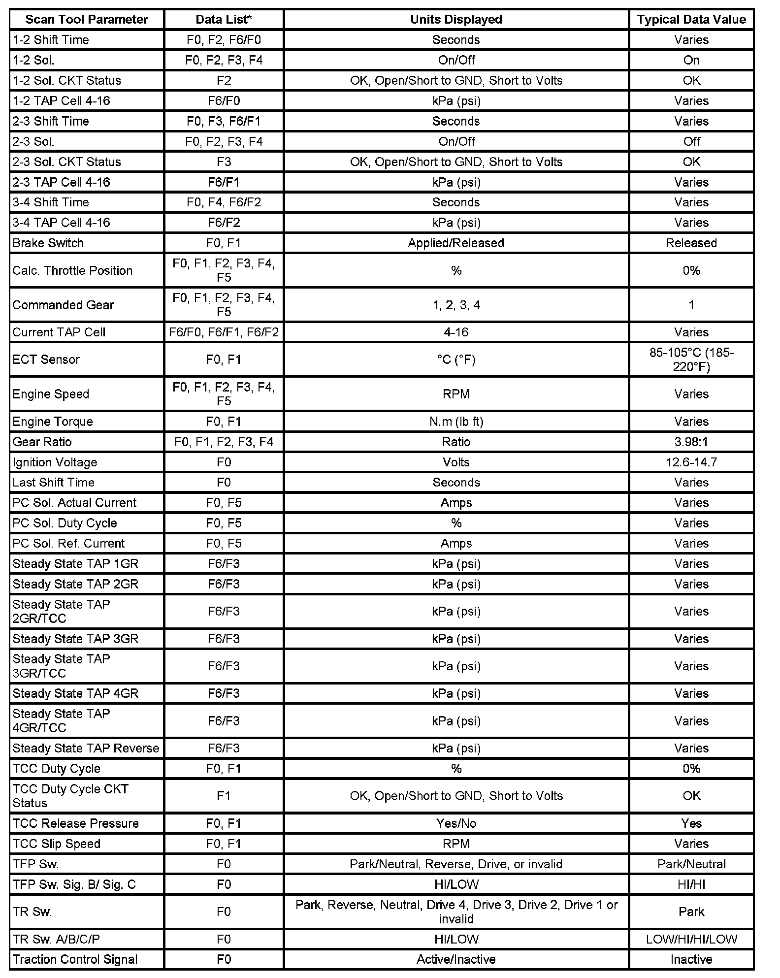 Home >> Chevrolet >> 2007 >> HHR L4-2.2L >> Repair and Diagnosis >> Powertrain Management >> Transmission Control Systems >> Testing and Inspection >> Scan Tool Data List