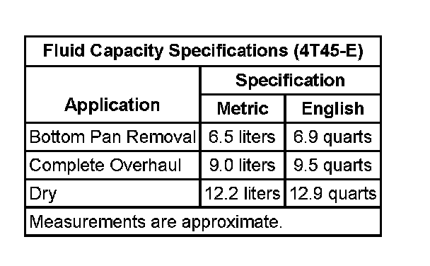 Fluid Capacity Specifications:
