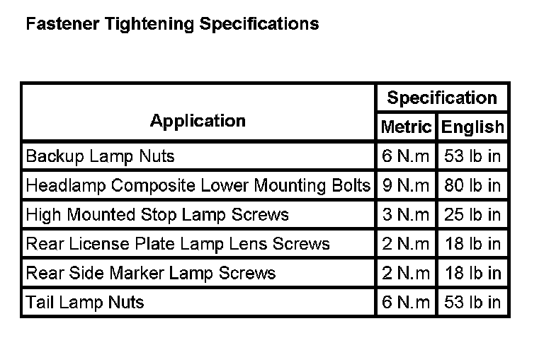 Fastener Tightening Specifications: