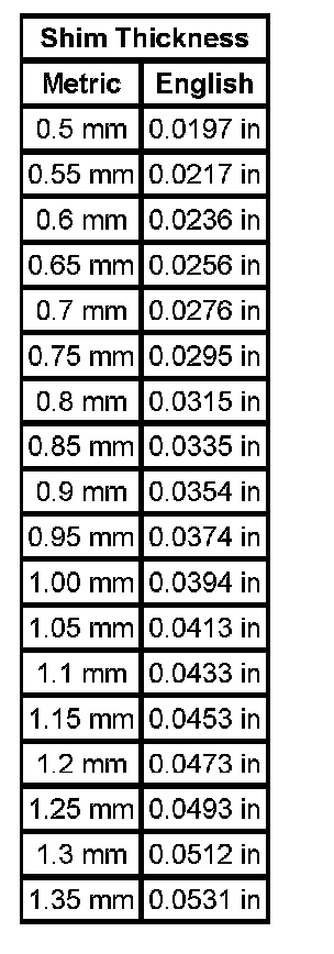Shim Size Specifications