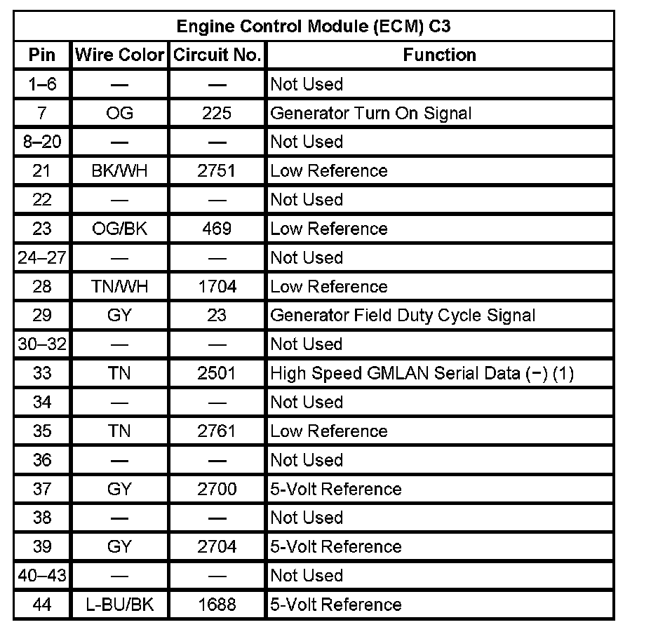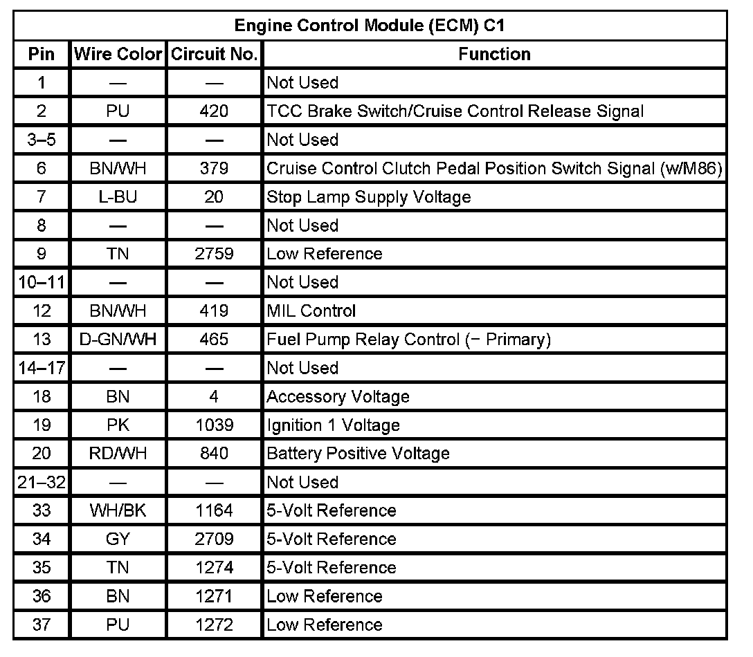 Engine Control Module (ECM) C1 (Pin 1 To 37):