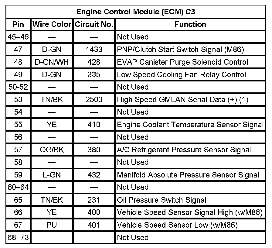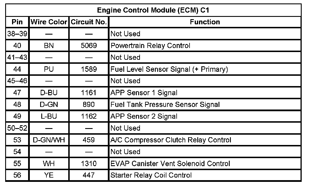 Engine Control Module (ECM) C1 (Pin 38 To 56):