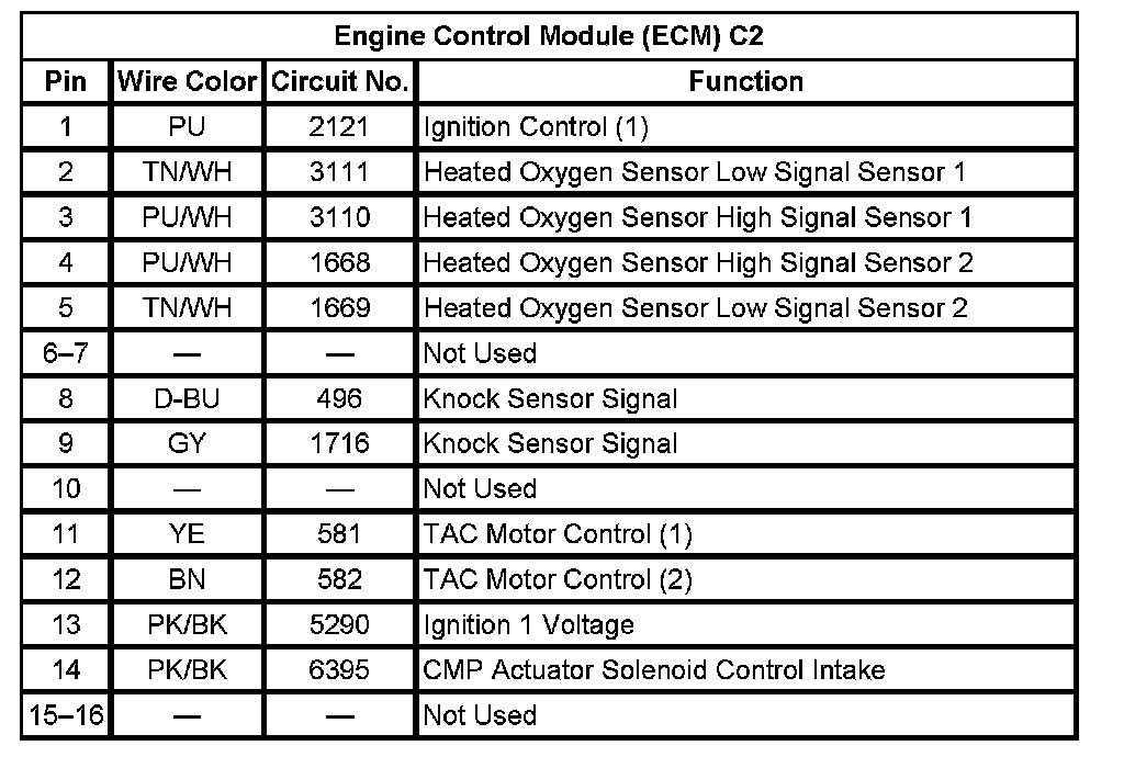 Engine Control Module (ECM) C2 (Pin 1 To 16):