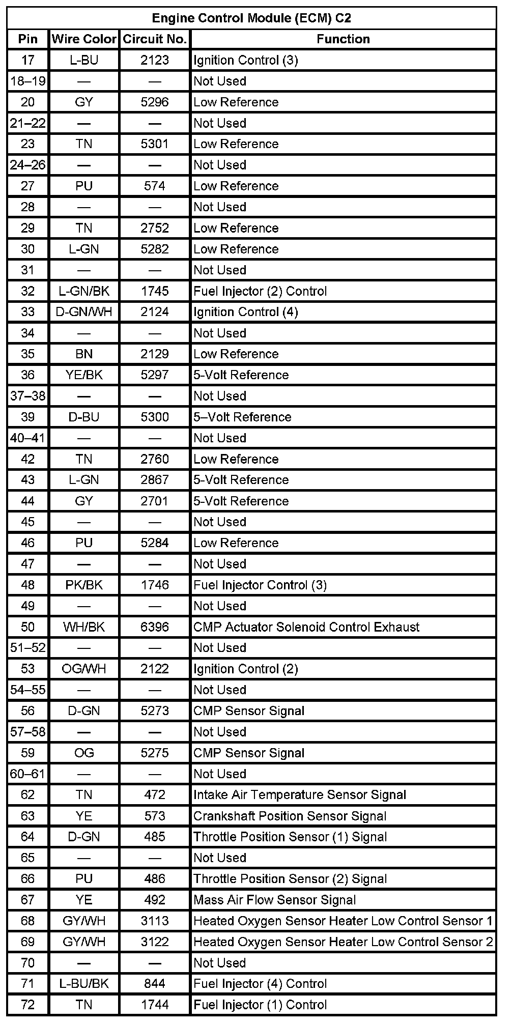 Engine Control Module (ECM) C2 (Pin 17 To 72):