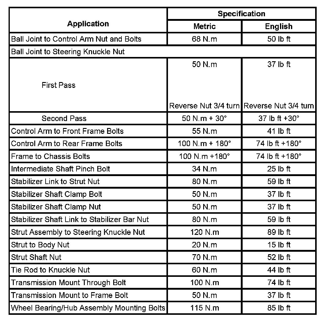 Fastener Tightening Specifications: