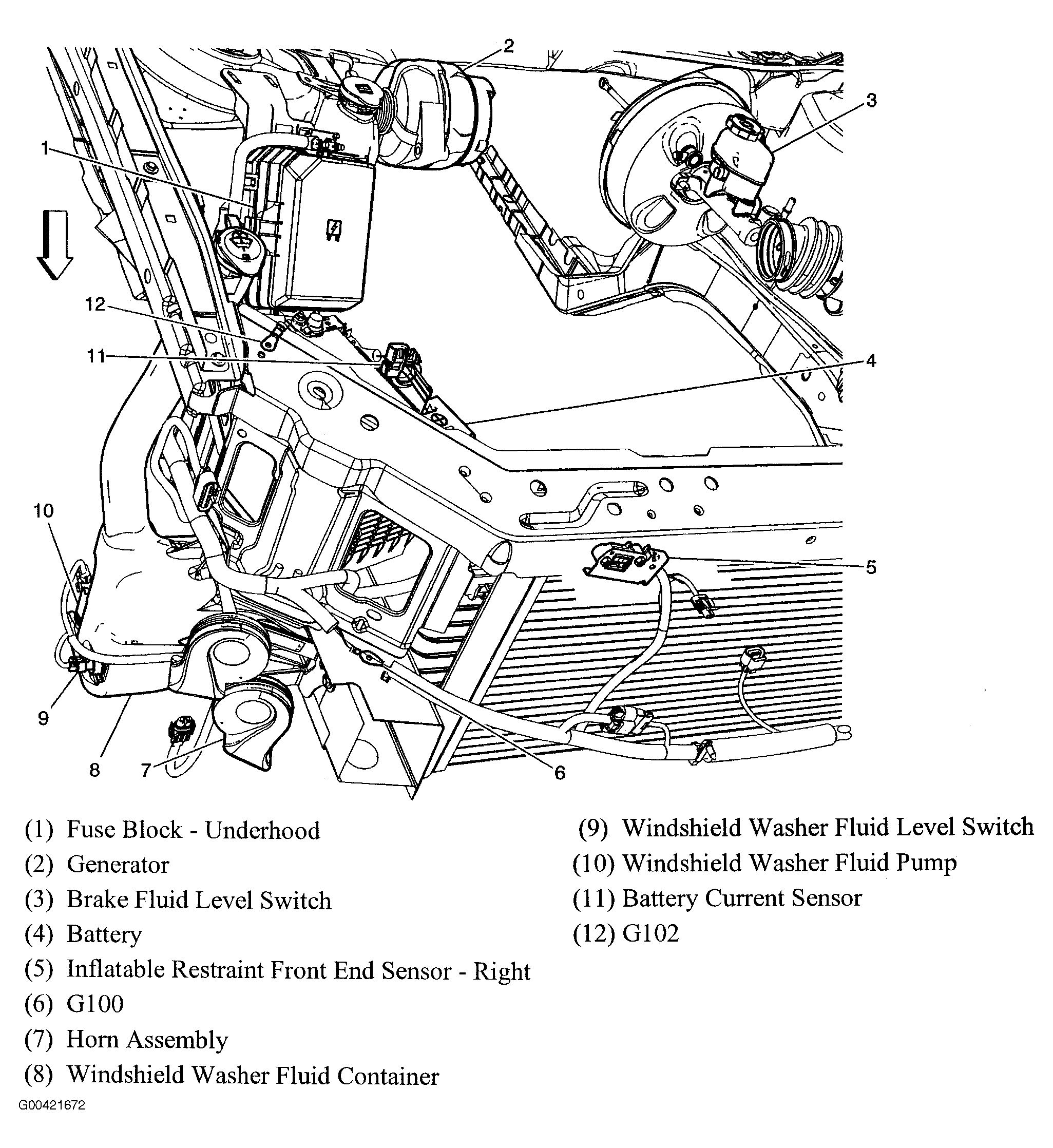 | Underhood Fuse Block | Mounted to right strut tower. See Figure. |