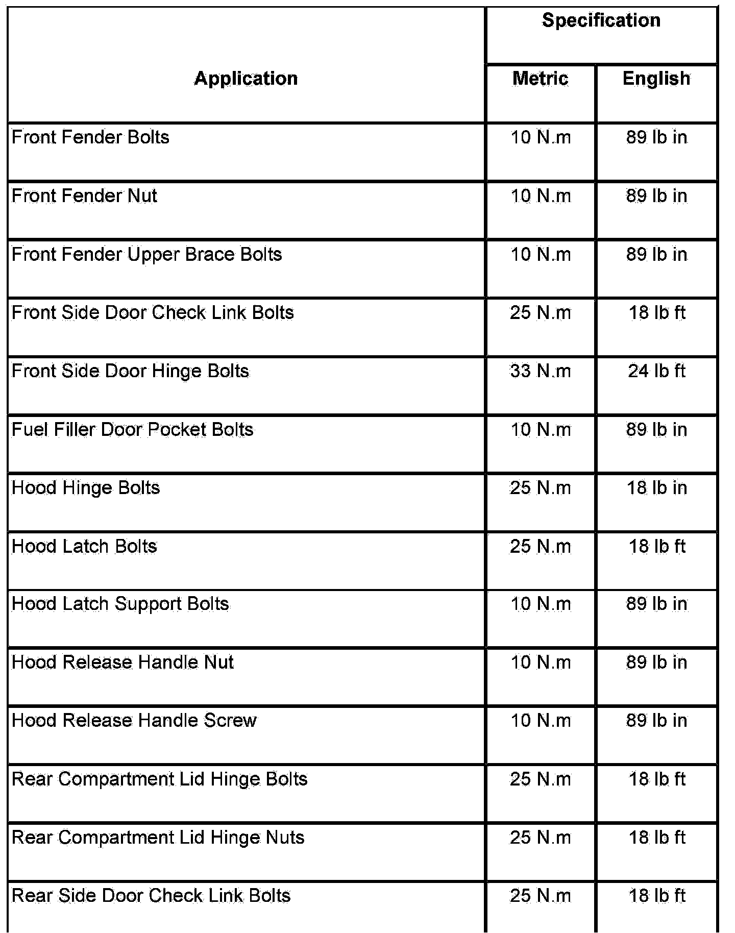 Fastener Tightening Specifications