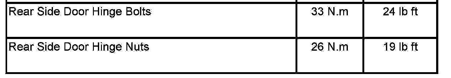 Tightening Specifications: