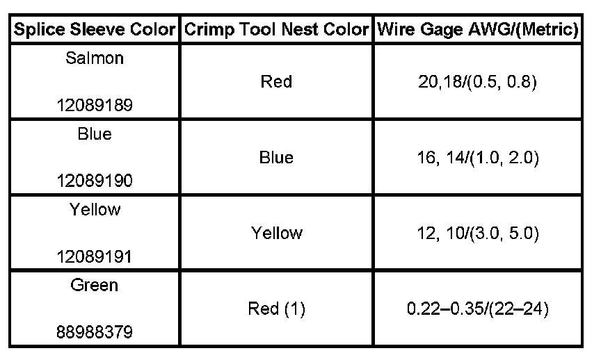 5. Select the proper duraseal splice sleeve (2) and the required crimp nest tool. Refer to the Crimp and Seal Splice Table.