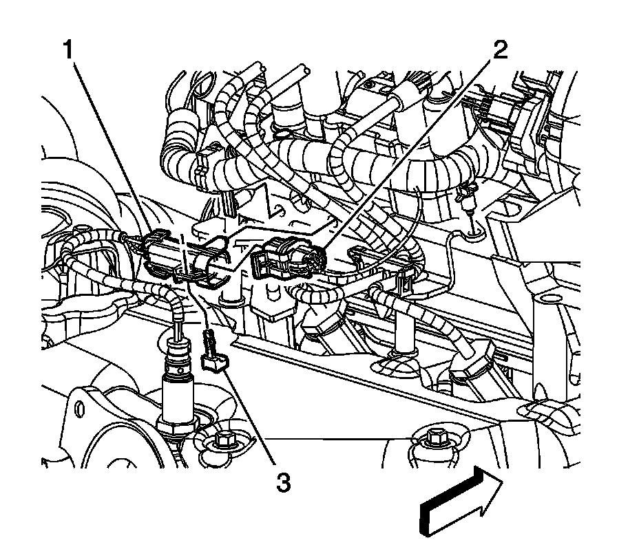 2. Disconnect the heater oxygen sensor (HO2S) electrical connector (2).