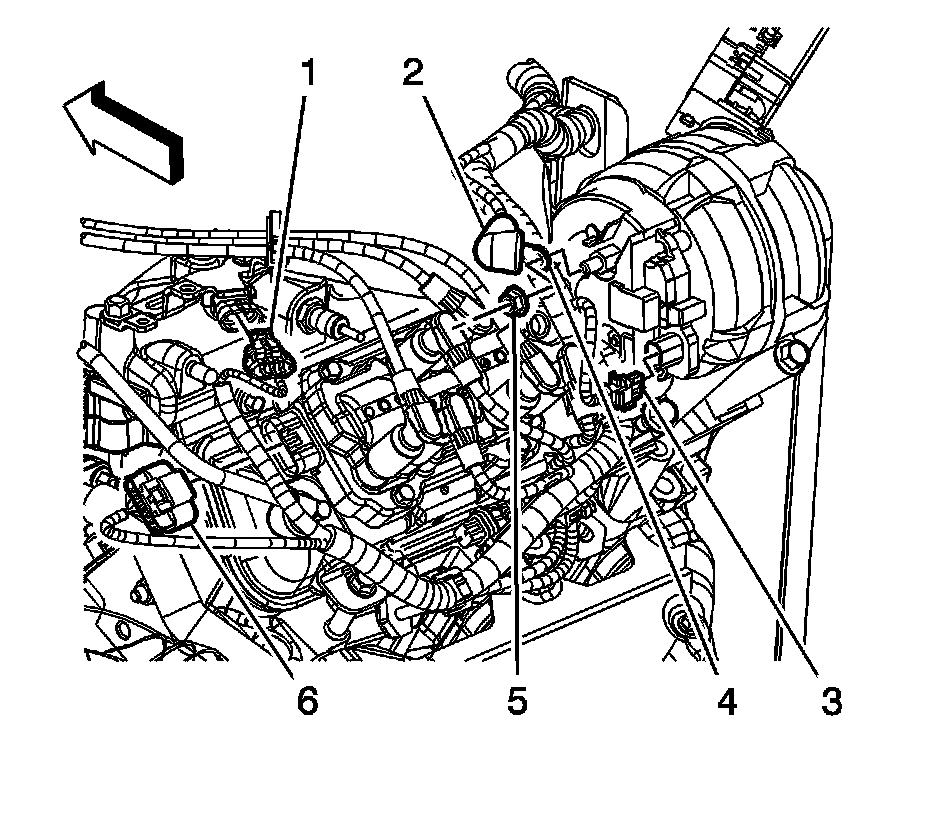 5. Connect the ignition coil electrical connector (6).