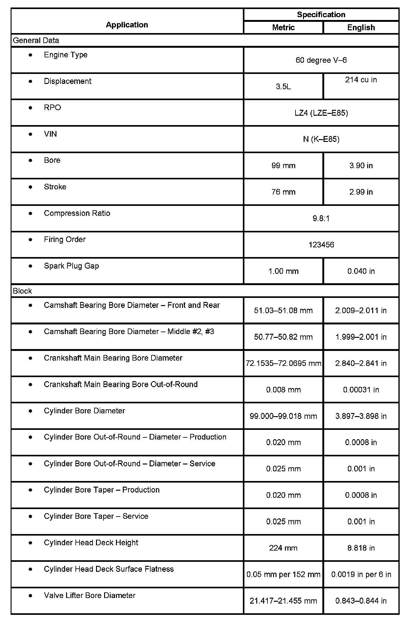 Engine Mechanical Specifications: