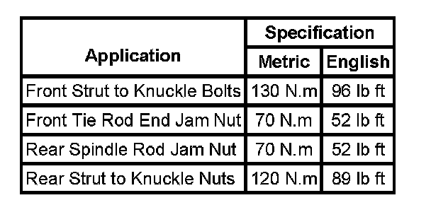 Fastener Tightening Specifications:
