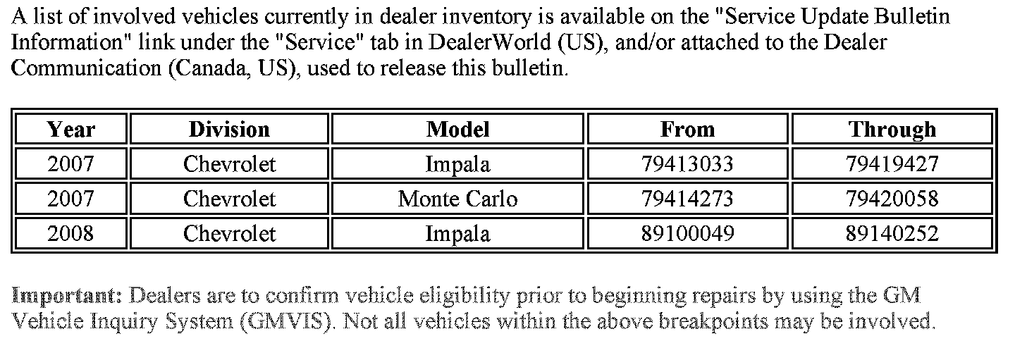 This bulletin provides a service procedure to inspect and, if necessary, replace the Post Catalyst Oxygen (02) Sensor on certain 2007 Chevrolet Impala, Monte Carlo; and 2008 Chevrolet Impala vehicles.