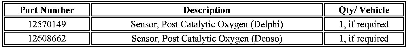 It is estimated that after Inspection less than 1% of involved vehicles will require a Post Catalyst Oxygen (02) Sensor replacement. Parts should only be ordered when the Inspection determines that it is necessary to replace the Post Catalyst Oxygen (02) Sensor.