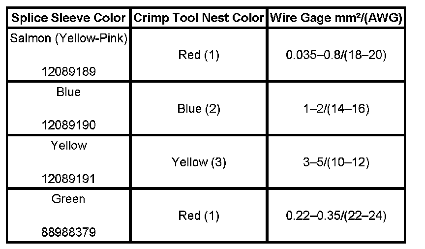 6. Select the proper DuraSeal splice sleeve according to the wire size. Refer to the above table at the beginning of the repair procedure for the color coding of the DuraSeal splice sleeves and the crimp tool nests.