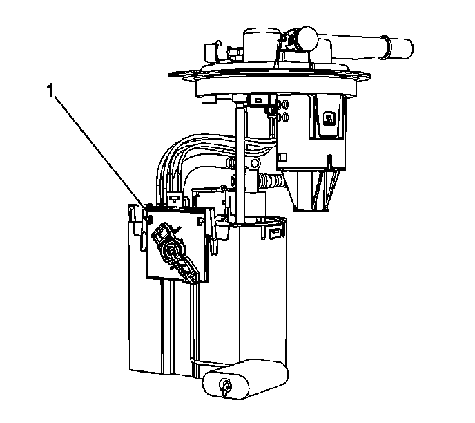 1. Slide the fuel level sensor (1) onto the bucket and upward.