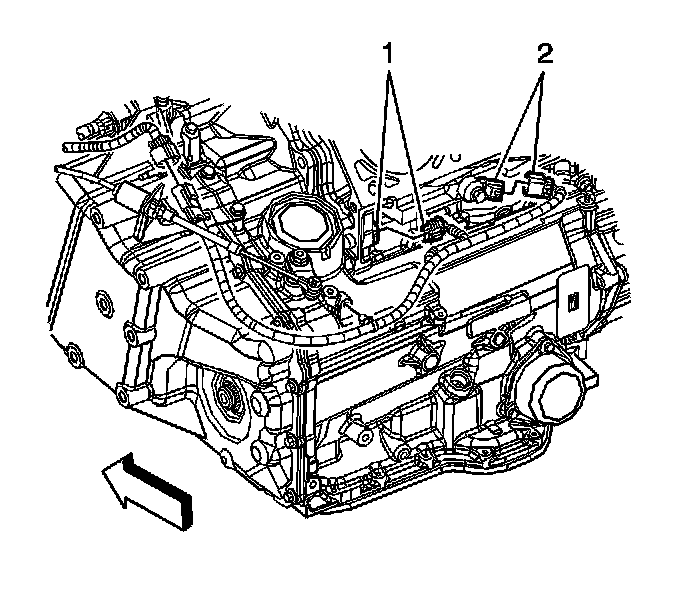 5. Disconnect the right knock sensor electrical connector (2), if required.