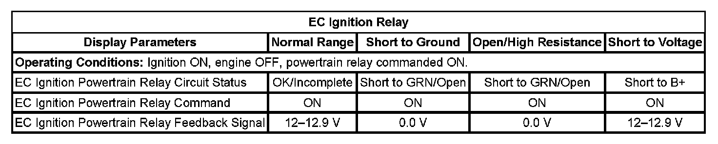 Important: On the scan tool, the powertrain relay is referred to as the EC ignition relay.