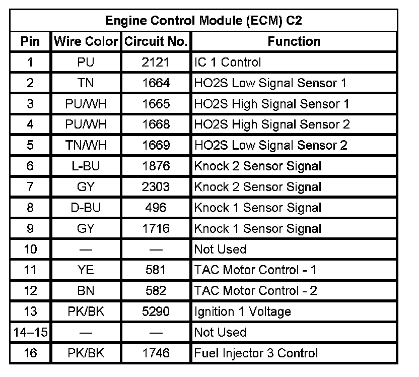 Engine Control Module (ECM) C2 (Pin 17 To 73):