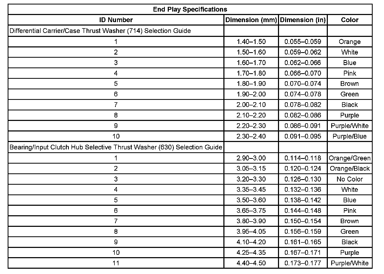 End Play Specifications: