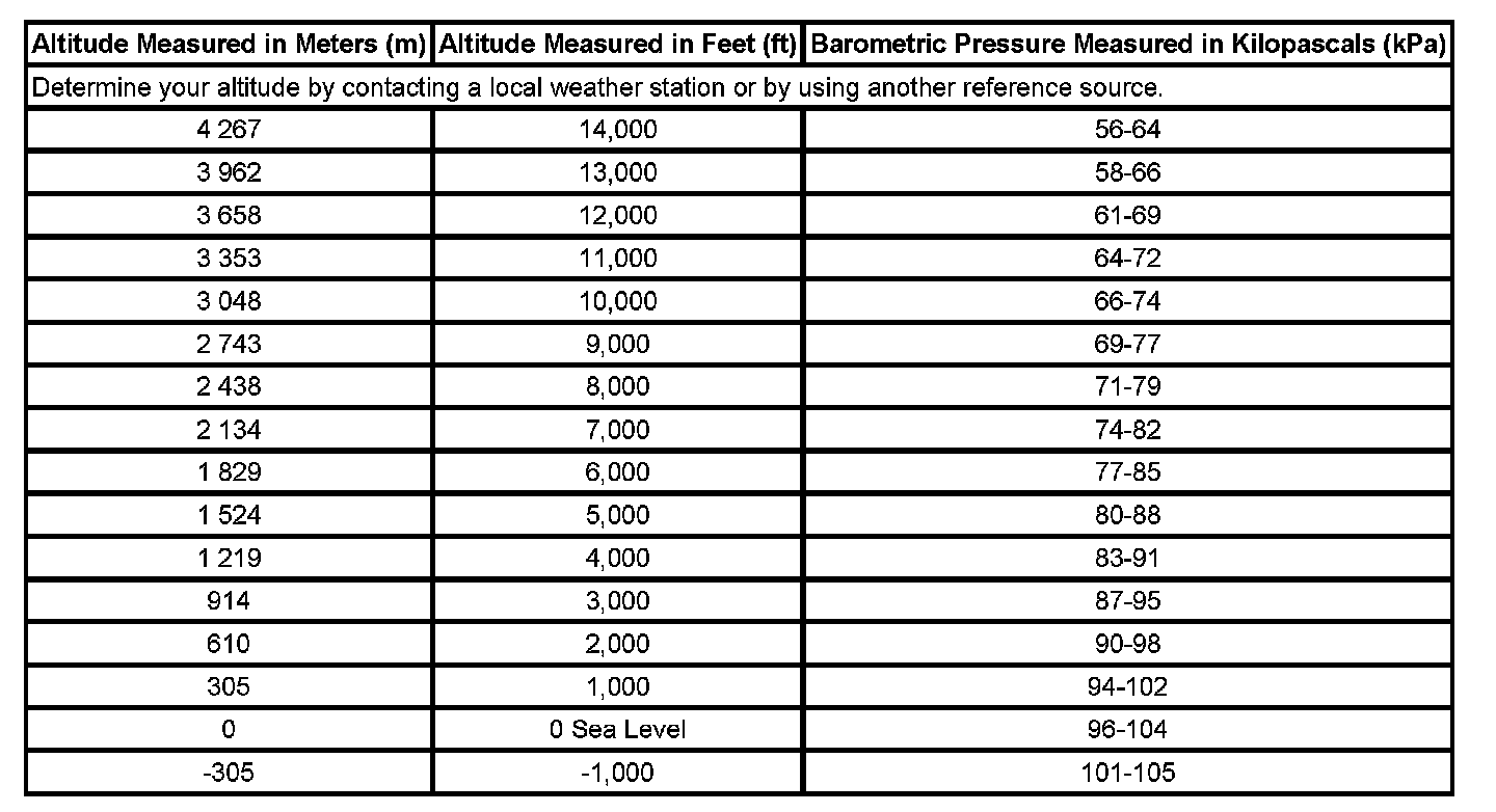 Altitude Versus Barometric Pressure