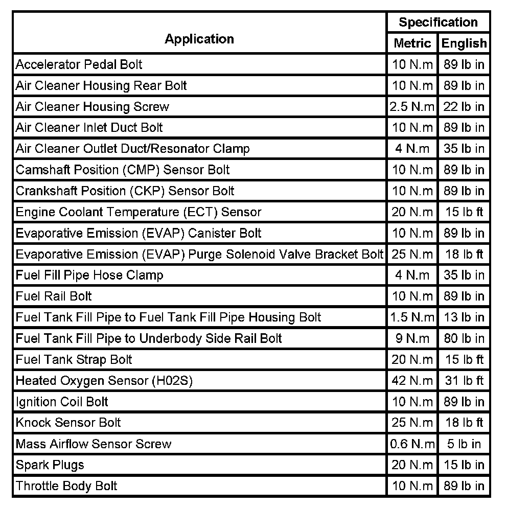 Fastener Tightening Specifications