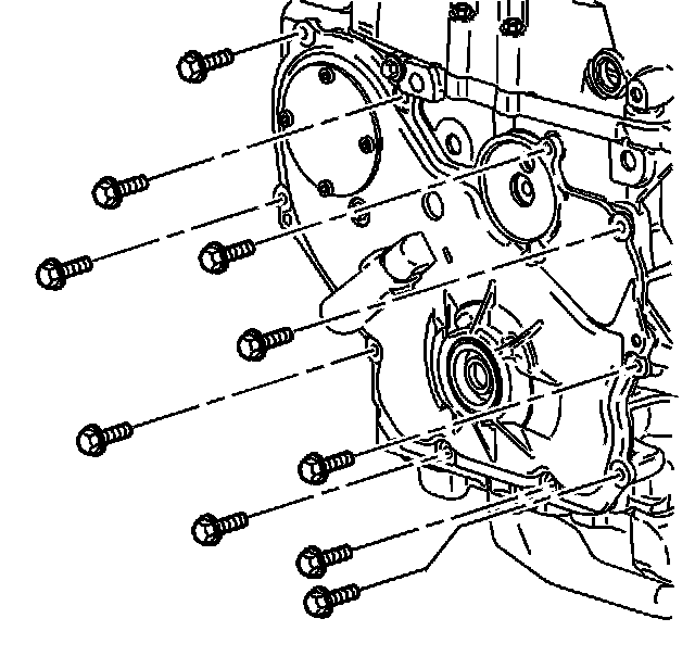 Engine Front CoverInstall the engine front cover bolts.