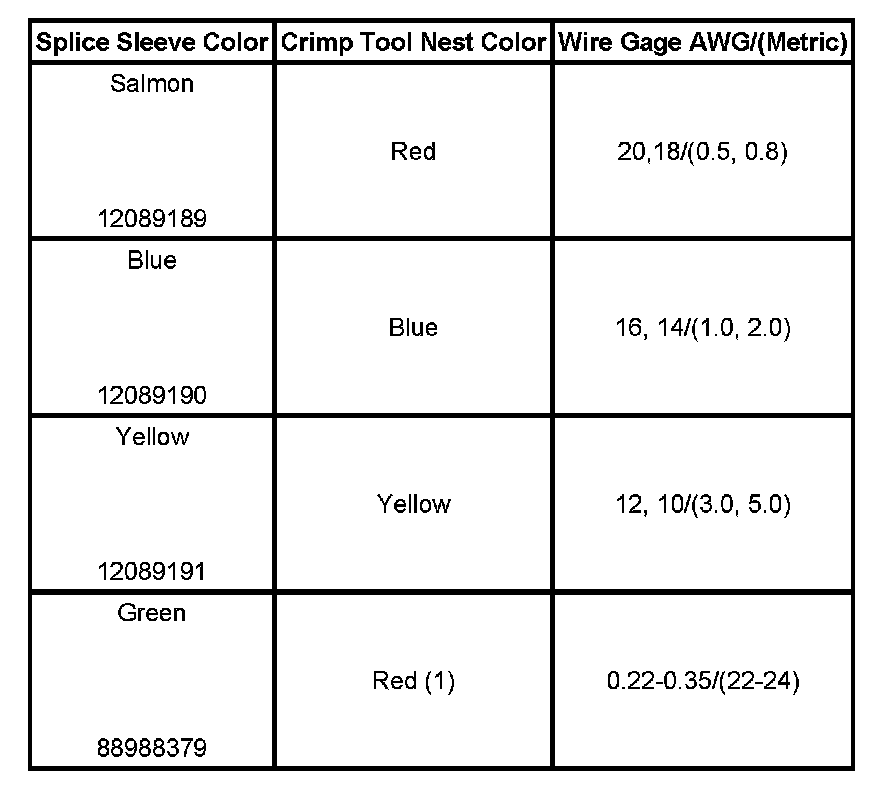 5. Select the proper duraseal splice sleeve (2) and the required crimp nest tool. Refer to the Crimp and Seal Splice Table.