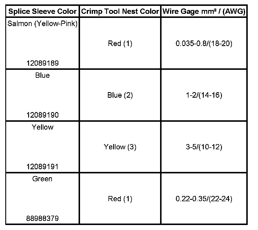 4. Select the proper DuraSeal splice sleeve according to the wire size. Refer to the above table at the beginning of the repair procedure for the color coding of the DuraSeal splice sleeves and the crimp tool nests.