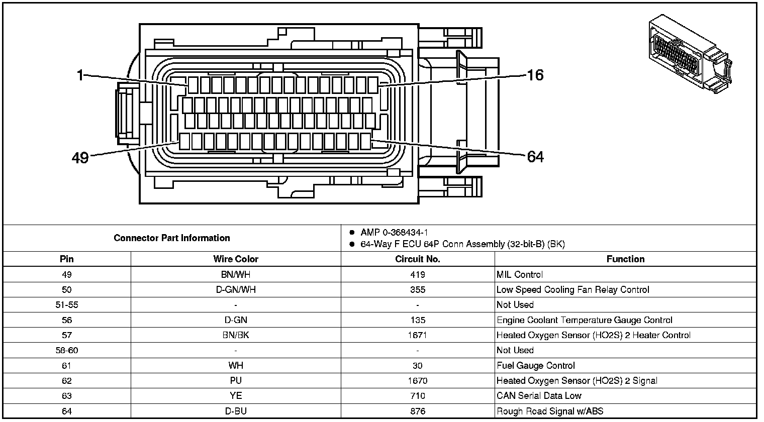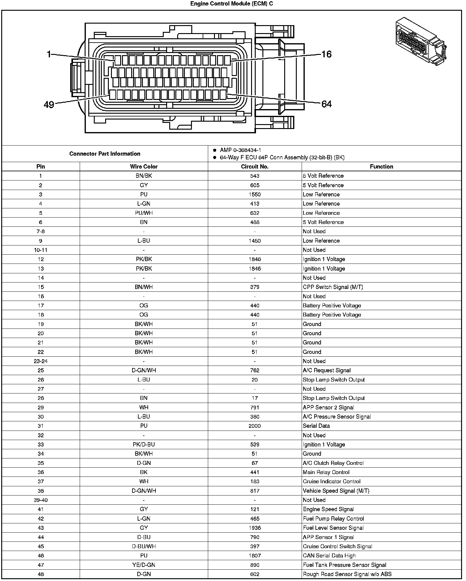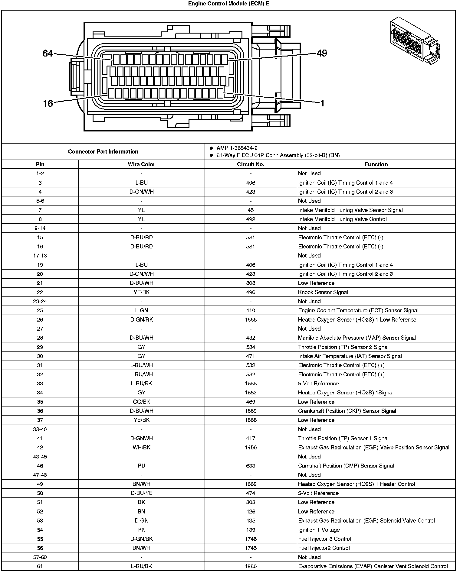 Engine Control Module Connector End Views (w/ Throttle Actuator Control)