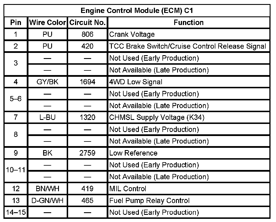 Engine Control Module (ECM) C1 (Pin 1 To 15):