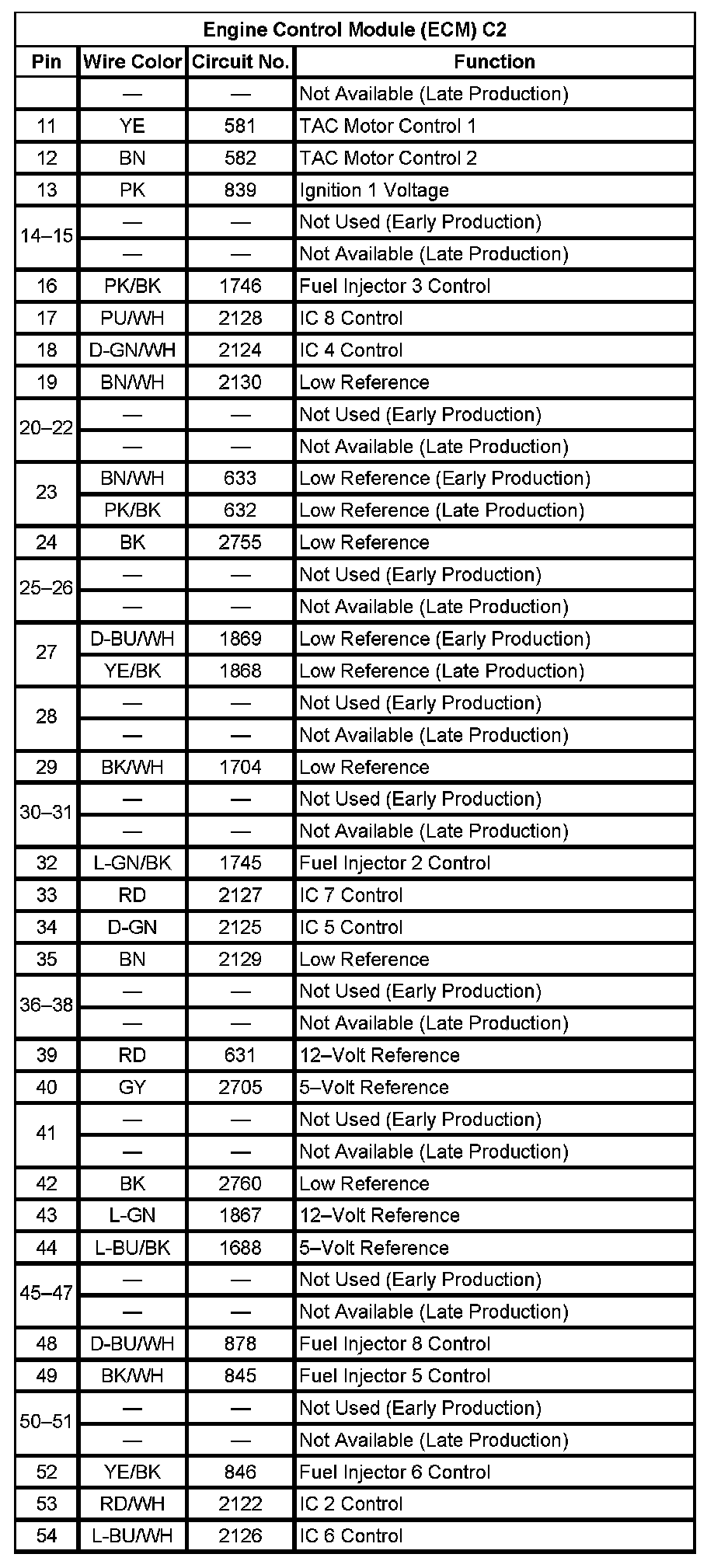 Engine Control Module (ECM) C2 (Pin 11 To 54):
