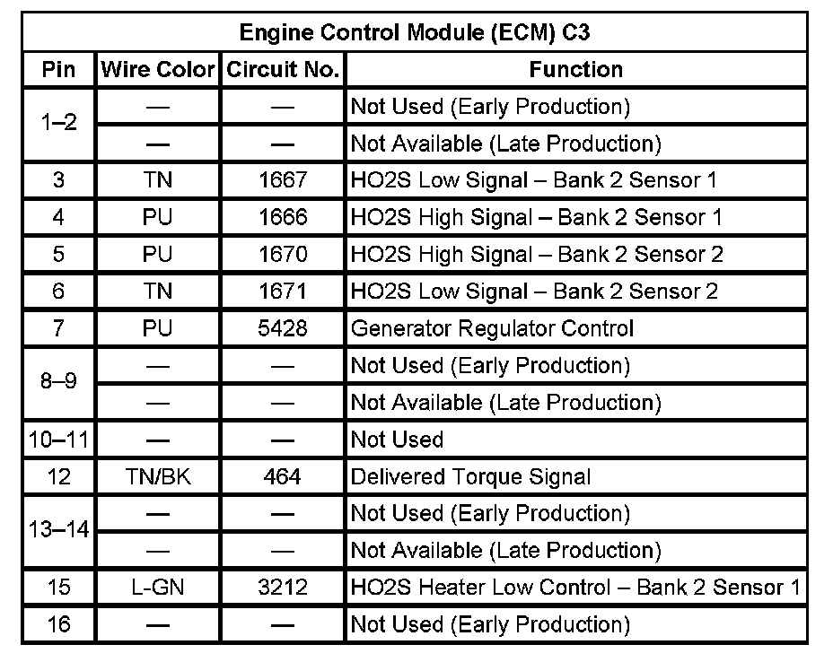 Engine Control Module (ECM) C3 (Pin 1 To 16):