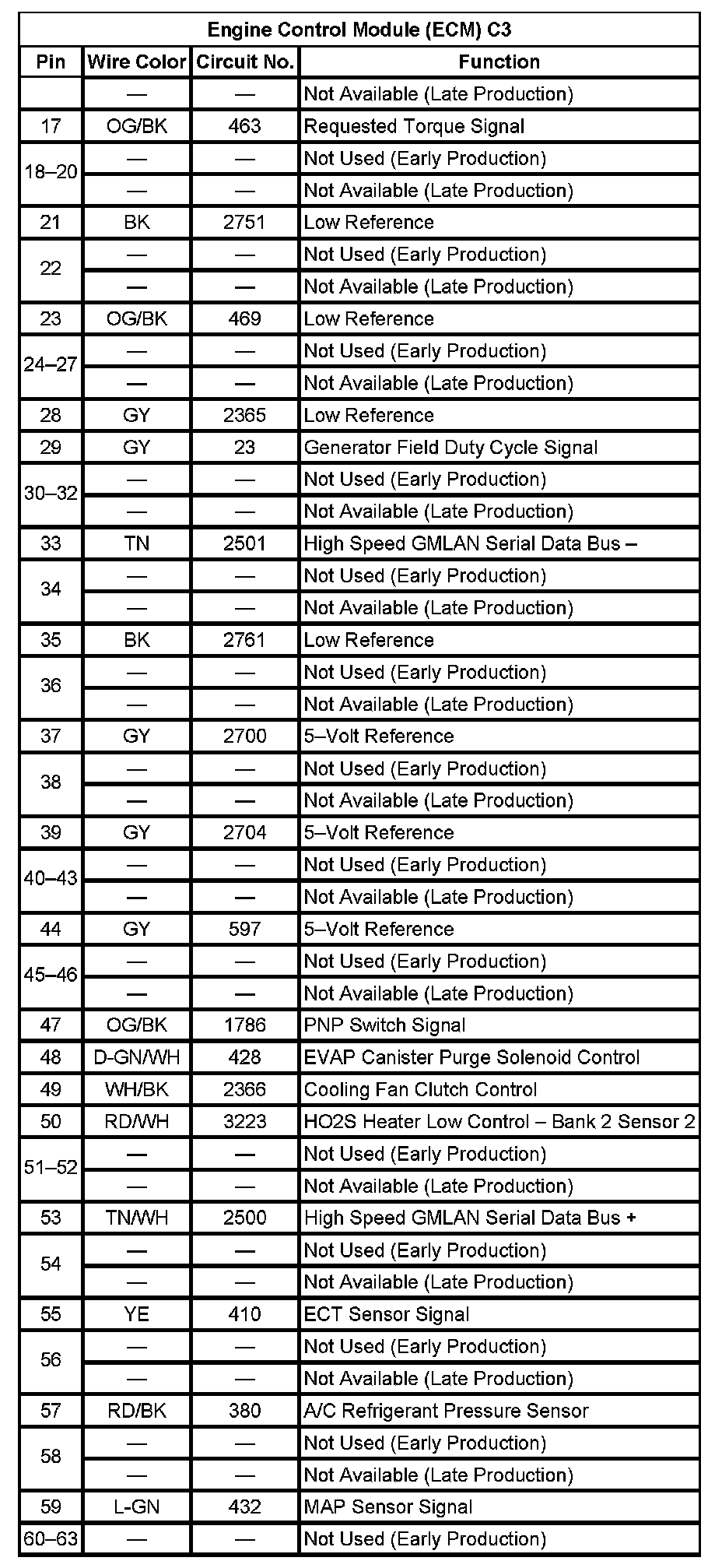 Engine Control Module (ECM) C3 (Pin 17 To 63):