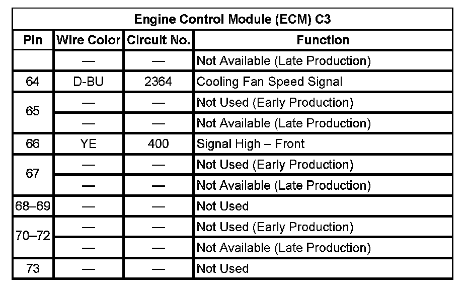 Engine Control Module (ECM) C3 (Pin 64 To 73):