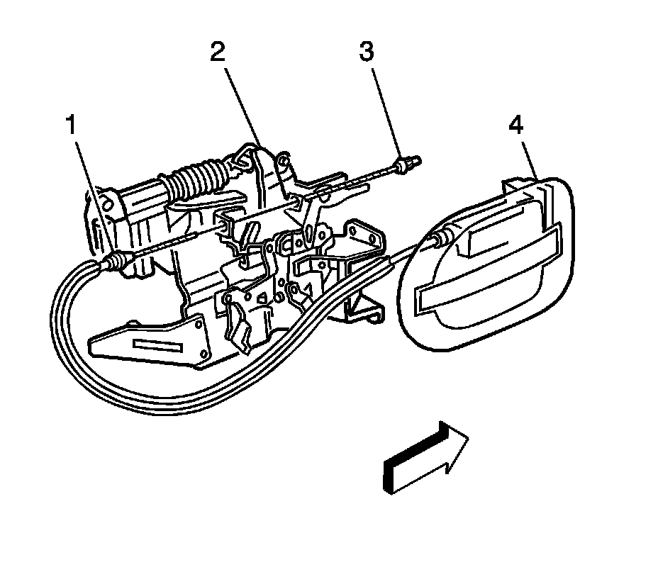9. Disconnect the lock rod cable (1) from the lock module (2).