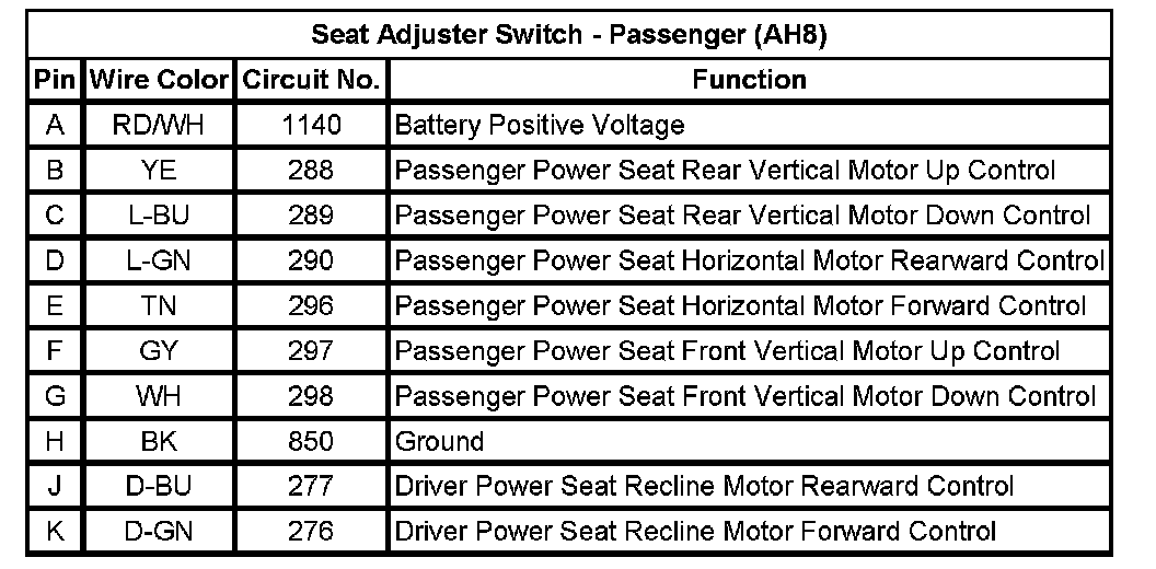 Seat Adjuster Switch - Passenger (AH8)